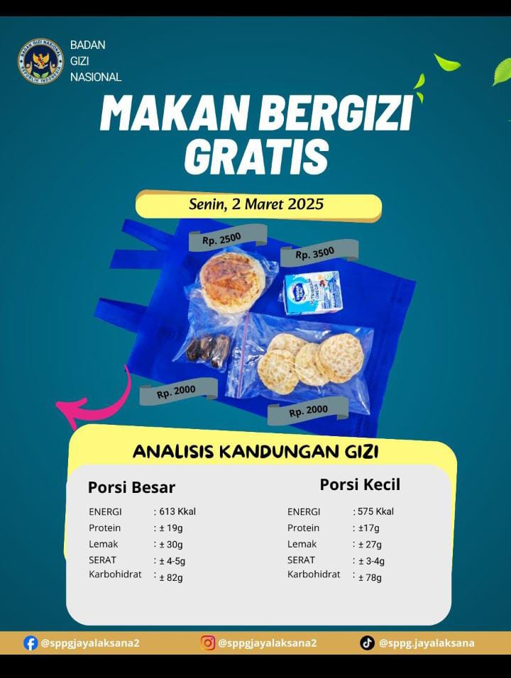 Dari jenis makanan kering yang didistribusikan ke sekolah-sekolah hari ini pada senin 02/03/2026 diduga masih dibawah harga standar Badan Gizi Nasional (BGN). Yaitu 10.000 untuk siswa SD kelas 4 keatas, SMP dan SMA, dan 8000 untuk siswa kelas 4 SD kebawah.